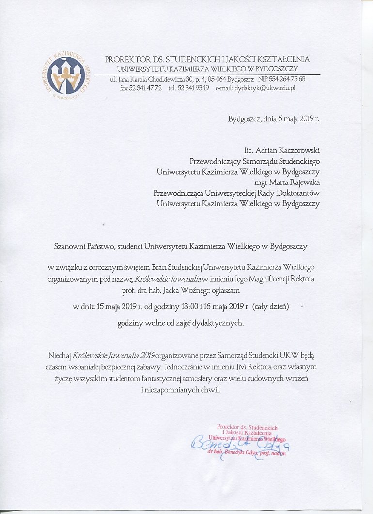 Z okazji Juwenaliów studenci będą cieszyć się godzinami rektorskimi: