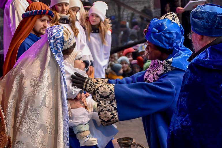 Mędrcy ze Wschodu wyruszyli za betlejemską gwiazdą, by spotkać nowo narodzonego Króla – Zbawiciela, a towarzyszyły im trzy świty - niebieska, zielona i czerwona, symbolizujące wiarę, nadzieję i miłość. W króla afrykańskiego ponownie wcielił się pochodzący z Ghany ojciec Izaak Antwi-Boasiako, misjonarz, który zaśpiewał kolędę w swoim rodzimym języku. Królowie europejski i azjatycki tradycyjnie jechali na koniach, natomiast król afrykański – na wielbłądzie Gacku.