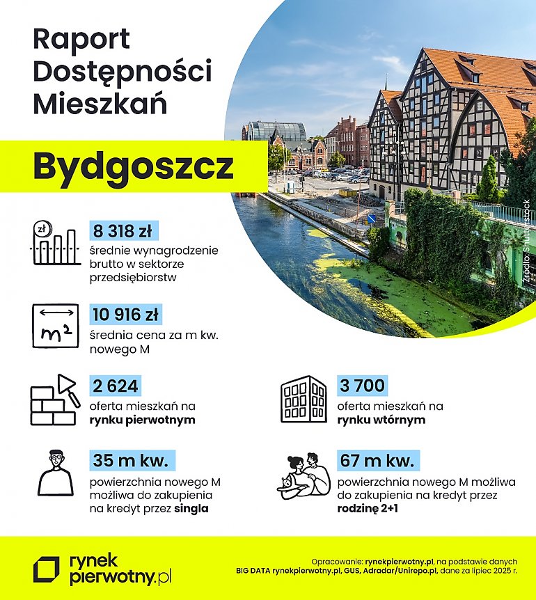 Dla większości bydgoszczan zakup mieszkania bez wsparcia finansowego jest praktycznie niemożliwy. Przy kredycie hipotecznym z 10% wkładem własnym i 25-letnim okresem spłaty, singiel może kupić mieszkanie o powierzchni 35 m kw., natomiast rodzina 2+1 67 m kw. To więcej niż w Warszawie czy Gdańsku, ale mniej niż w Gorzowie czy Opolu.