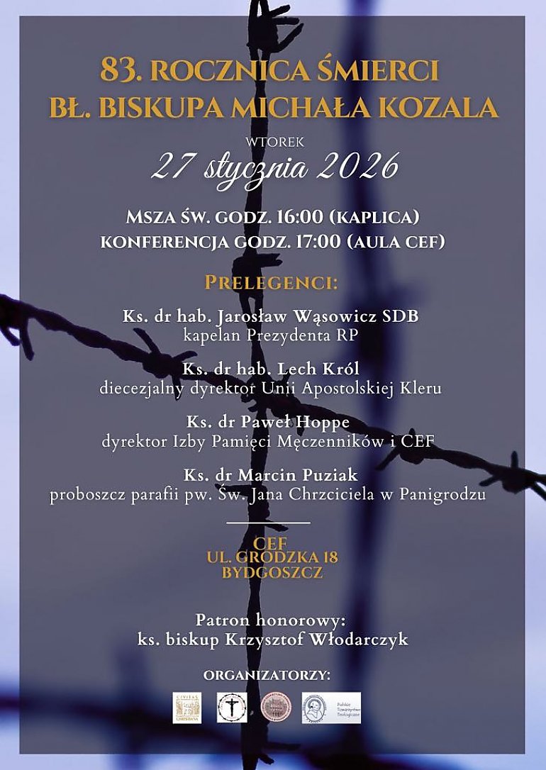 27 stycznia 2026 r. w Centrum Edukacyjno Formacyjnym (CEF) przy ul. Grodzkiej 18 w Bydgoszczy odbędzie się wyjątkowe wydarzenie upamiętniające 83. rocznicę śmierci bł. biskupa Michała Kozala – kapłana, biskupa i męczennika XX wieku.