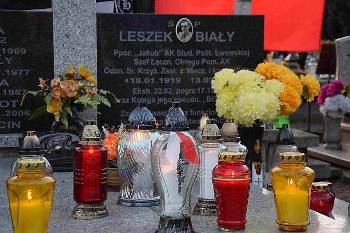 Leszek Biały (ps. „Jakub”, „Radus”, „Herbert”) urodził się 18 stycznia 1919 roku w Sewerynówce na Podolu. Był podporucznikiem czasu wojny, szefem łączności Okręgu Pomorskiego Armii Krajowej i jednym z Żołnierzy Wyklętych. Rodzina Białych, nie godząc się z faktem, że Sewerynówek po 1920 roku znalazł się w granicach bolszewickiej Rosji, opuściła rodzinne strony. Najpierw zamieszkali w Łodzi, a w styczniu 1922 roku przenieśli się do Bydgoszczy. Początkowo mieszkali przy ul. Dworcowej, następnie na Sielance.