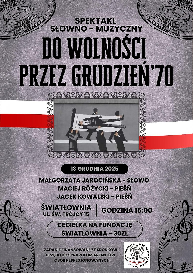 Bydgoska Światłownia przy ul. św. Trójcy 15 już w sobotę 13 grudnia o godzinie 16:00 będzie miejscem wyjątkowego wydarzenia – inscenizacji zatytułowanej „Do wolności przez GRUDZIEŃ’70”. Spektakl ten jest hołdem dla ofiar tragicznych wydarzeń grudniowych z 1970 roku i przybliża ich przebieg.