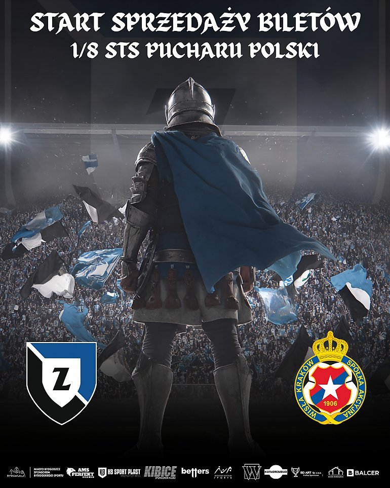 Od poniedziałku, 17 listopada, rusza sprzedaż pierwszej puli biletów na spotkanie 1/8 STS Pucharu Polski, gdzie Zawisza Bydgoszcz zmierzy się z Wisłą Kraków. Pierwsza partia wejściówek będzie dostępna już od jutra, a kolejne pule trafią do fanów w późniejszych terminach.