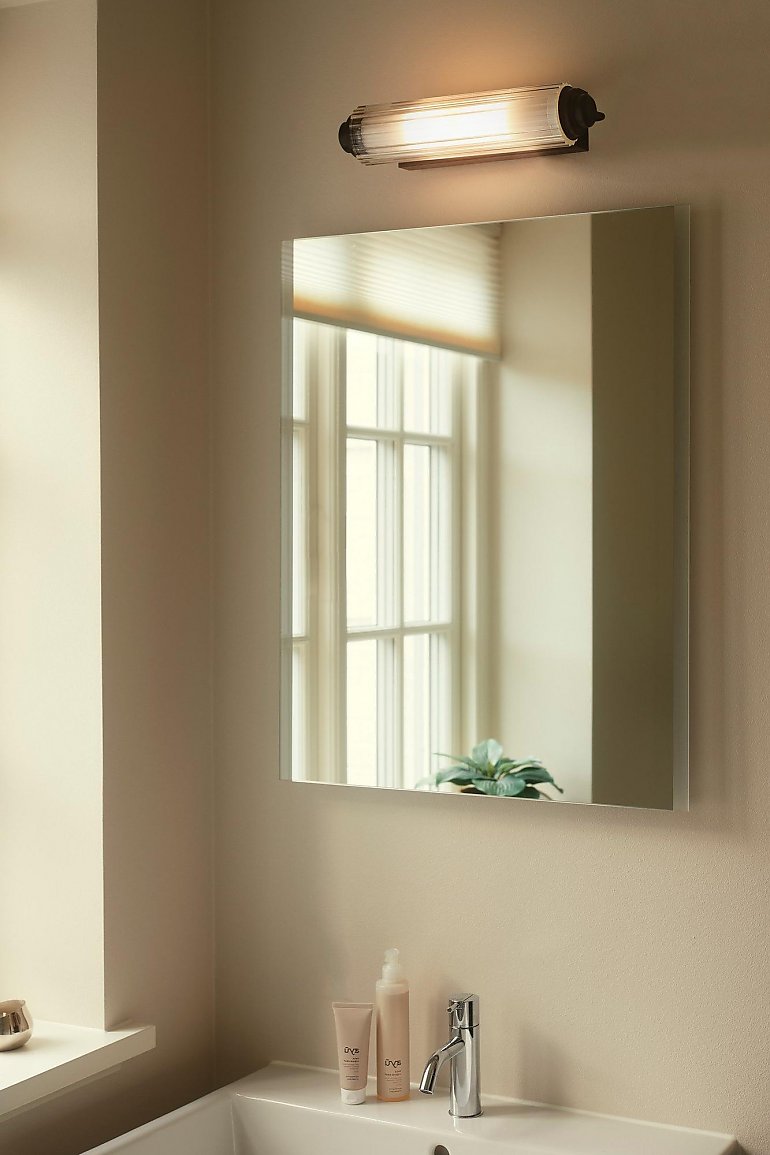 W przypadku szerokich luster korzystnym rozwiązaniem jest umieszczenie jednej oprawy nad lustrem, która zasługuje na odpowiednią klasę ochrony (IP44), aby być bezpieczna w wilgotnym środowisku.